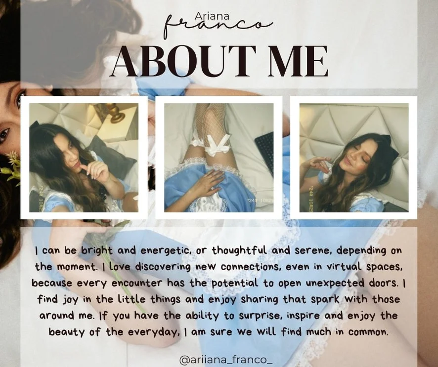 I CAN BE BRIGHT AND ENERGETIC, OR THOUGHTFUL AND SERENE, DEPENDING ON THE MOMENT. I LOVE DISCOVERING NEW CONNECTIONS, EVEN IN VIRTUAL SPACES, BECAUSE EVERY ENCOUNTER HAS THE POTENTIAL TO OPEN UNEXPECTED DOORS. I FIND JOY IN THE LITTLE THINGS AND ENJOY SHARING THAN SPARK WITH THOSE AROUND ME. IF YOU HAVE THE ABILITY TO SURPRISE, INSPIRE AND ENJOY THE BEAUTY OF THE EVERYDAY. I AM SURE WE WILL FIND MUCH IN COMMON💜