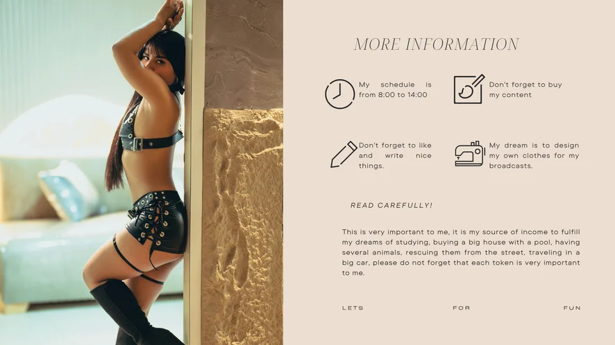 バックスタイル, ヒール, スパンキング, アヘ顔, エッチなダンス, 割れ目, 手マン, レザー, 足フェチ, オイルショー, ヨガ, 野外, オナニー指導, スカートたくし上げ, 露出, コルセット, ディルドまたはバイブ, ロールプレイ, 大人のおもちゃ, フェラ, オナニー, ハードコア, 騎乗位, ストリップ, ディープスロート, トップレス, 中出し, 寝取られ系, 顔面騎乗位, 手コキ, アス・トュー・マウス, 下ネタ話, ダブル挿入, オーガズム, 潮吹き, トゥワーク, アナル用おもちゃ, 猿ぐつわ, ペニス評価, ラテックス, パイズリ, 顔射, ナイロン, アナル