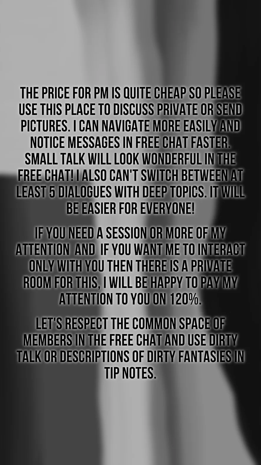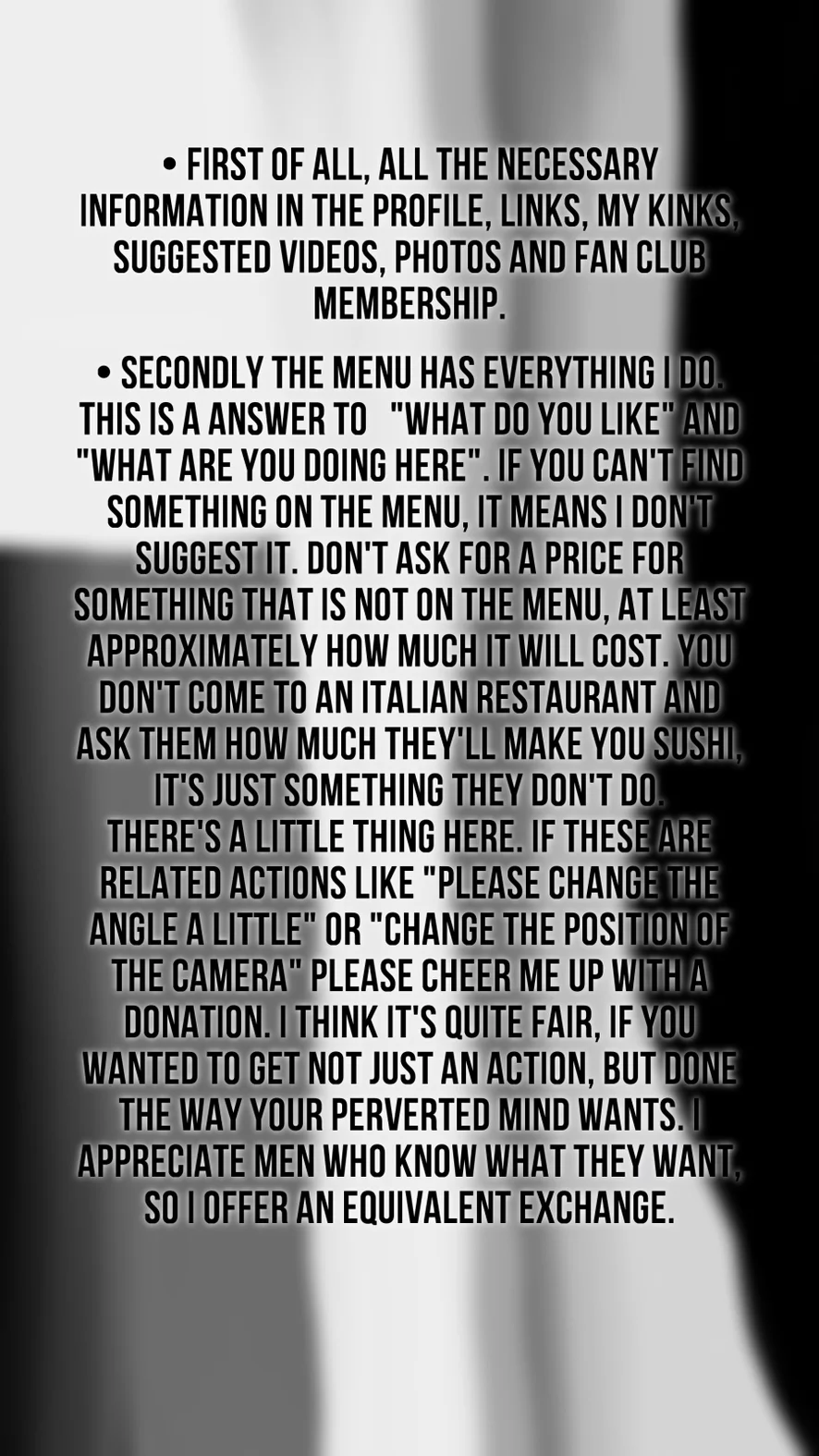 - Tell me what you into and I will answer if I am ready to do session with you or no.