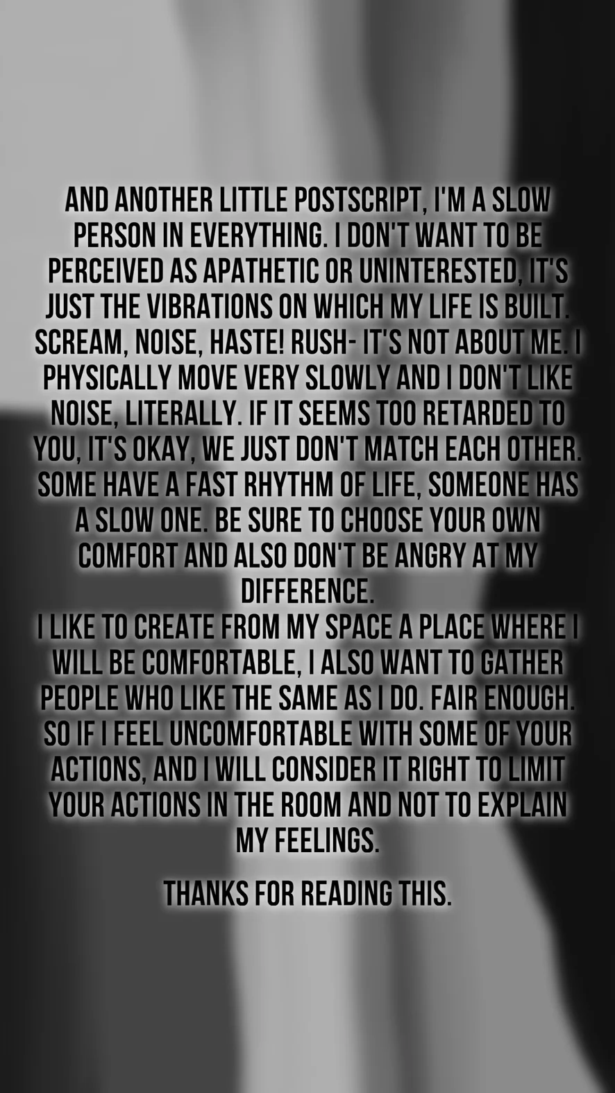 - My background, accent, location and personal life are not a subject of public discussion.